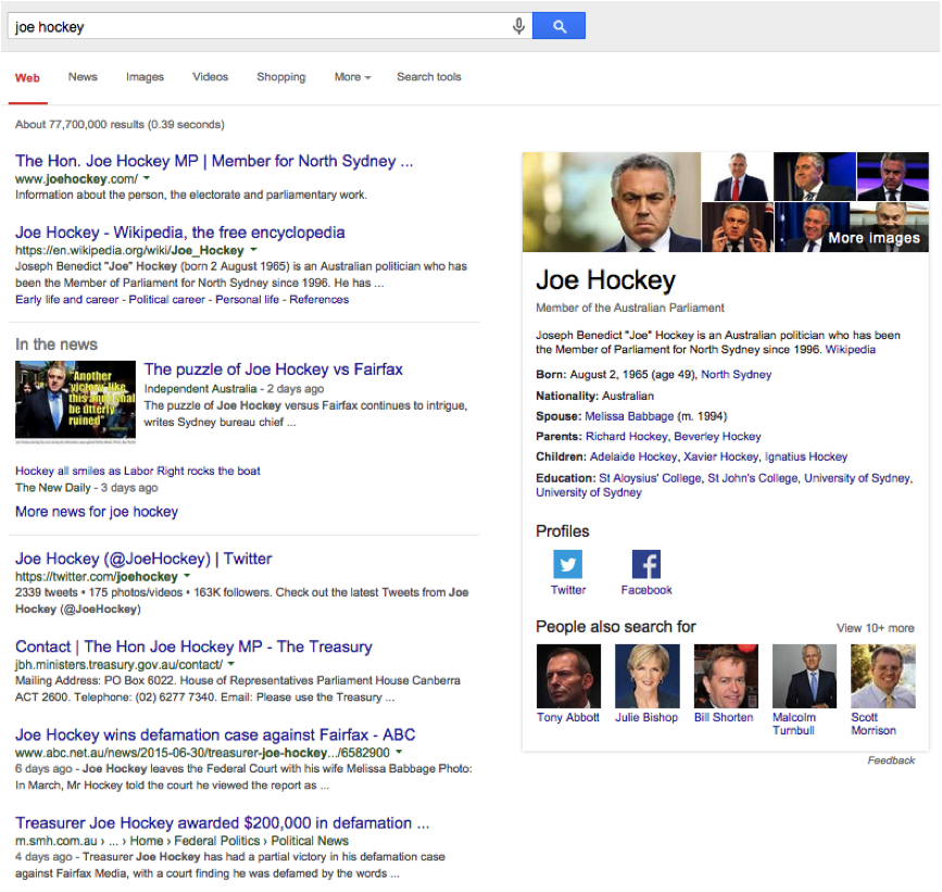Don’t believe it? We’ve googled (see, it is a verb) Joe Hockey (remember him from our recent blog “He said WHAT? Three free lessons in crisis communications”) and you can count only seven results, one of which is his Twitter handle and three are around media stories, and a big Knowledge Graph entry. Times certainly are a changin’.