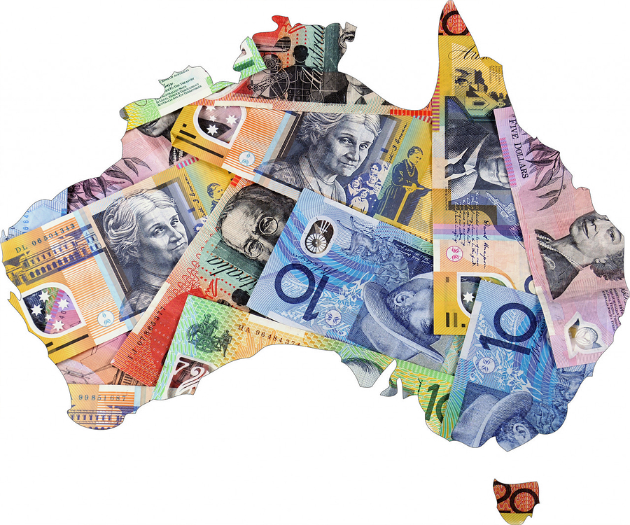 Map Of Australia With Australian Money Dollar Notes.